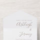 Cette simple faire-part de mariage tout-en-un moderne présente du texte taupe sur un arrière - plan blanc. Ajoutez les noms de la mariée et du marié en calligraphie stylisée et les détails en police sans serif. Le RSVP détachable facilite la réponse de vos invités. Ajoutez votre adresse de retour dans le rabat extérieur et l'arrière du RSVP.