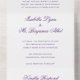 Un modèle tout-en-un unique avec carte rsvp pour une option pratique et économique pour les couples économes en budget. Le design simple présente un faire-part de mariage traditionnel comprenant les noms des parents d'accueil le long du nom de la mariée et du marié dans une élégante calligraphie. Tout le texte est violet royal sur un arrière - plan blanc et peut être changé en n'importe quelle couleur que vous désirez en cliquant sur le bouton "personnaliser". Cette suite de faire-part de mariage de style classique est parfaite pour un mariage formel.
