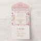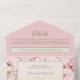 Cette élégante faire-part de mariage tout-en-un présente des roses d'aquarelle douce en rose vif romantique avec un panneau central crème et des détails de coeur de corde or. La bordure florale délicate crée un cadre intemporel pour vos détails mariages. Avec les sections RSVP et info intégrées, cette invitation scelle & envoi est à la fois belle et pratique - aucune enveloppe requise. Parfait pour les mariages romantiques ou les cérémonies d'été classiques.