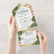 Invitation Tout En Un Mariage Gold Foil & Green Palm Leaf Beach