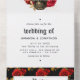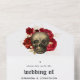 Cérémonie gothique du mariage rouge, noir et or crimson, avec un crâne orné de roses rouges et un dramatique motif rose.