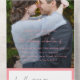 Mariage moderne tout en une invitation avec les détails de votre événement sur votre photo verticale préférée avec les mots "la célébration mariage de" dans un script élégant.
