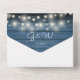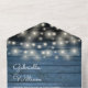 Le tout dans un faire-part de mariage avec de jolies lampes à cordes, vos initiales monogrammes et élégante typographie moderne minimaliste sur un arrière - plan de panneaux de bois bleu rustique. L'invitation comprend une carte RSVP perforée qui peut être adressée individuellement ou laissée en blanc pour que vous puissiez écrire à la main les coordonnées de votre invité. Conçu par Thisisnotme©