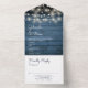 Invitation Tout En Un Mariage Monogramme en bois rustique bleu
