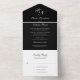 Un modèle tout-en-un unique avec carte rsvp pour une option pratique et économique pour les couples économes en budget. La faire-part de mariage de style traditionnel présente un design classique et simple avec vos deux monogrammes initiaux ainsi que vos noms dans une calligraphie élégante. Tous les éléments de conception sont en noir et blanc et peuvent être modifiés à l'aide de l'outil d'édition de conception. Ce design élégant est parfait pour un mariage formel.