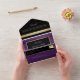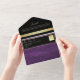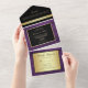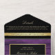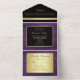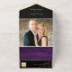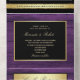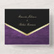 Élégante, moderne, luxueuse, chic, invitation de mariage minimaliste violet, or et noir tout-en-un avec photo personnalisée du couple au dos.