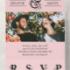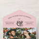 Floral tout en un faire-part de mariage avec votre photo et une belle esperluette fleurie en noir muet contre rose clair.