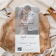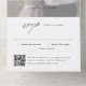 Elégant QR Code Photo Mariage dans une seule invitation avec des détails de calligraphie de script élégants et une superposition de texte classique sur une photo verticale portrait. Il y a une carte RSVP arrachée avec le code QR. Cliquez sur le bouton Modifier pour customiser cette conception.