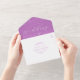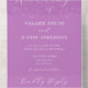 Le design minimal branche les invitations de mariage violet. Simple et propre. La couleur Arrière - plan peut être modifiée pour s'adapter à votre thème mariage. Polices élégantes de style serif et calligraphie.