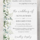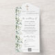 Design élégant tout en un mariage avec une bordure de verdure d'eucalyptus sur un arrière - plan blanc propre avec une belle croix décorative pour un mariage religieux. Inclut RSVP avec un code QR numérisable que vous pouvez lier à votre site Web mariage. Générer votre propre code QR unique via la fonction "personnaliser ce modèle" sur la page produit. Ajoutez votre URL à la zone fournie et un code QR flambant neuf générera sur la conception juste pour vous.