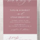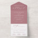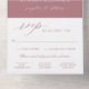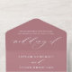 Un rose classique et élégant tout en un faire-part de mariage est une option invitation triplé unique qui est auto-fermé, scellé, envoyé aux invités avec une carte postale RSVP détachable; pas besoin d'enveloppes! Le design comprend des accents de script de calligraphie moderne avec typographie de style classique. L'adresse de l'invité peut être incluse à l'arrière - imprimée ou manuscrite, ainsi que l'envoi postal. Le rabat arrière comprend un accent floral simple avec un texte d'adresse de retour personnalisé, et la carte postale RSVP inclut l'adresse de retour sur le dos afin qu'il puisse être arraché à l'aide d'un pli perforé et renvoyé par la poste sans enveloppe. Les couleurs rose rose et blanc poussiéreuses peuvent être modifiées pour correspondre à votre jeu de couleurs mariages.