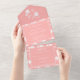 Invités Invitations à votre prochain mariage avec un Rose de corail All in One Wedding Invitation. Le design Invitation présente des roses blanches et un arrière - plan carrelé assorti avec une carte RSVP perforée. Personnalisez avec les noms du marié et de la mariée ainsi que la date et l'emplacement du mariage. Papier à lettres mariage supplémentaire disponible avec cette conception aussi.