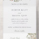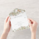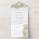 Laissez-vous tenter par l'élégance du passé avec ce faire-part de mariage tout-en-un, qui présente l'emblématique motif "Golden Lily" de William Morris. Le design est une symphonie de tons pastel, avec une palette de vert olive, d'ivoire et d'or doux, accentuée par des touches de corail et de bleu ciel. Cette invitation est soigneusement conçue avec une section RSVP commode, combinant la beauté du design historique et la fonctionnalité moderne. La texture luxueuse du papier vient compléter le motif floral complexe, faisant de cette invitation un souvenir que les clients aimeront chérir.