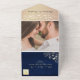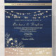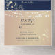 Donnez le ton à votre mariage romantique rustique avec cette invitation tout-en-un en faux bois bleu marine, avec de délicats accents floraux d'or, des lumières à cordes brillantes et une carte postale RSVP assortie. L'effet shimmer doux et la section photo personnalisée ajoutent chaleur et élégance — parfait pour les mariages d'hiver ou de grange. Remarque : Cette invitation nécessite une enveloppe distincte pour l'envoi.