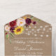 Mariage Rustique, Aquarelle Florale mixte, Lumières à cordes Kraft Mariage All In One Invitation avec carte RSVP comprend des roses bordeaux, roses roses roses, roses rouges, tournesols et verdure botanique.