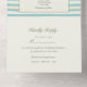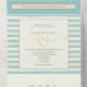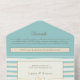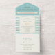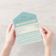 Lumineux, aéré et audacieux, ce faire-part de mariage rétro moderne tout en un présente des rayures pastel turquoise à l'aquarelle, un agencement épuré, un arrière - plan en ivoire et un élégant détail de cordes d'or. Conçu dans un sceau pratique et au format d'envoi, il comprend RSVP et des sections de détails dans une pièce facile à envoyer. Parfait pour les mariages de plage, de bord de mer ou d'été avec une ambiance ludique et contemporaine.