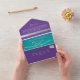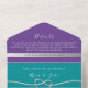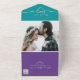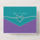 Faites honneur à votre amour avec une élégance sobre grâce à notre faire-part de mariage tout-en-un minimaliste. Doté d'un script de calligraphie épuré dans les tons turquoises et violets, il dégage un charme moderne. Le coeur de la corde en faux argent ajoute une touche de sophistication, tandis que l'image personnalisée du couple sur le dos insuffle l'intimité et la chaleur. Complète avec des détails mariages et une section RSVP, cette invitation promet une célébration remplie d'amour et de style intemporel, où chaque élément reflète la beauté de votre voyage unique ensemble.
