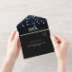 Un arrière - plan noir, des confettis bleus décorés. Personnalisez et ajoutez l'année de naissance, le nom, les détails de la fête, la date RSVP, l'adresse et le nom de retour.