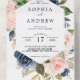 Invitation Tout En Un Marine Mariage bleu & rose Fleurs tout en un