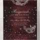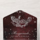 Un QUINCEAÑERA moderne, chic et glamour avec un masque de mascarade en argent dessiné à la main avec un diamant en parties scintillant argent scintille sur un arrière - plan d'aquarelle rouge foncé bordeaux avec rsvp le tout dans une invitation.