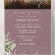 Le tout dans un faire-part de mariage mauve avec une végétation fleurie, élégante typographie calligraphie script et votre photo spéciale. L'invitation comprend une carte RSVP perforée avec votre site Web mariage et votre code QR. Conçu par Thisisnotme©