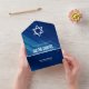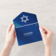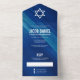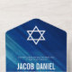 Bar Mitzvah moderne bleu marine grunge tout en une invitation pour votre journée spéciale. Ce design unique présente un design bleu avec une étoile de David. Modifiez cette invitation vous-même à l'aide des outils de modèle en ligne.