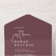 Ce burgundy chic et moderne aime tout simplement le code QR mariage dans une seule invitation est parfait pour un mariage simple. Le design boho moody présente une typographie bohème rustique unique et élégante, dans une couleur de vin rouge marsala foncé. Écrivez vos adresses d'invités à l'arrière de l'invitation pliée, ou achetez des autocollants de étiquette de adresse d'invités de coordination (vendus séparément). Inclure un code QR pour vos invités à RSVP en ligne, ou ils peuvent envoyer leur réponse dans la section carte postale RSVP.