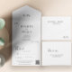 Elégant design minima audacieux marié et noms de mariés typographie script élégant budget abordable tout en un sceau et envoyer faire-part de mariage avec RSVP inclus et code QR sur le site Web en simple typographie noir et blanc. Personnalisez avec les initiales des mariées monogrammes et des noms de mariés. +++++++++++++++++++++++++ L'invitation est adaptée aux cérémonies et réceptions mariages neutres classiques du printemps, de l'été, de l'automne ou de l'hiver.
