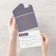 Invitation Tout En Un Moins Rétro violet or Monogramme Classy Mariage