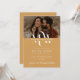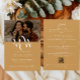 Cette faire-part de mariage tout-en-un moderne et élégante donne le ton d’une célébration de l’amour aussi élégante que chaleureuse. Avec une teinte dorée au champagne qui évoque la chaleur, cette invitation est la promesse d'une cérémonie romantique et chic à venir. Le devant est orné d'une photo avec un monogramme chic et les noms du couple. Ci-dessous, les détails de votre journée spéciale sont présentés dans une présentation propre et facile à lire, soulignant la nature sophistiquée de votre événement. Le verso présente tous les détails supplémentaires que vous souhaitez inclure - des informations de réception et les arrangements d'hébergement, aux détails RSVP en ligne et l'adresse du site du mariage. L'inclusion d'un code QR relie élégamment la tradition à la commodité moderne, offrant aux clients un moyen sans effort d'accéder à des informations supplémentaires et de confirmer leur présence en ligne. Cette invitation n’est pas seulement une faire-part, c’est un souvenir, un prélude aux souvenirs que vous et vos invités créerez. Sur mesure pour le couple contemporain qui apprécie un mélange de romance classique et de design moderne, cette invitation est plus que du papier, c'est le premier chapitre de votre histoire mariage. C’est une invitation non seulement à un endroit, mais à un nouveau départ, qui prépare le terrain pour la célébration sophistiquée et mémorable qui attend vos proches.