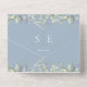 Ce faire-part de mariage tout-en-un chic et verdoyant peut être personnalisé avec vos initiales monogrammes et informations de mariage sur un arrière - plan bleu poussiéreux. L'invitation comprend une carte RSVP perforée avec votre code QR du site Web mariage. Conçu par Thisisnotme©