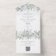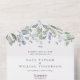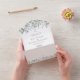 Le tout dans un faire-part de mariage avec jolie aquarelle verdure feuillage et élégante typographie moderne. L'invitation comprend une carte RSVP perforée avec votre code QR du site Web mariage. Conçu par Thisisnotme©