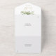 Le tout dans un faire-part de mariage doré avec verdure botanique, feuilles rustiques et typographie élégante. L'invitation comprend une carte RSVP perforée avec votre code QR du site Web mariage et des détails. Conçu par Thisisnotme©