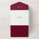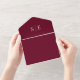 Cette faire-part de mariage tout en un minimaliste chic peut être personnalisée avec vos initiales monogrammes et informations de mariage sur un arrière - plan bordeaux. L'invitation comprend une carte RSVP perforée avec votre code QR du site Web mariage et des détails. Conçu par Thisisnotme©