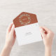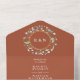 Le tout dans un faire-part de mariage avec une guirlande fleurie de laurier décorative et une bordure en or contenant vos initiales monogrammes sur un arrière - plan en terre cuite. L'invitation comprend une carte RSVP perforée qui peut être adressée individuellement ou laissée en blanc pour que vous puissiez écrire à la main les coordonnées de votre invité. Conçu par Thisisnotme©