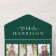 Envoyez des voeux de vacances uniques avec ce design de cinq photos avec un monogramme rustique et une photo de garde détachable et encadrable ! Un collage de photos constitue la partie principale de la carte avec un arrière - plan vert classique, et l'arrière de l'image perforée a beaucoup de place pour le texte personnalisé sur l'année ou toute salutation spéciale que vous souhaitez inclure.