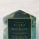 Vos rêves se réalisent enfin et ce design abstrait fluide, à l'encre d'alcool, donne le ton parfait pour le fabuleux mariage que vous avez toujours imaginé. Dans les tons vert de verre de mer à émeraude foncée, rehaussée d'or brillant, la faire-part de mariage tout-en-un présentée ici fournit un modèle pour ajouter facilement vos propres détails d'événement et exigences RSVP. Recherchez ID988 pour voir d'autres pièces dans ce jeu de mariages coordonné.