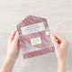 Une très belle et élégante faire-part de mariage motif rose et or tourbillon. Le texte est noir et vous changerez le nom et l'adresse de la réponse déchirer et ajoutez un cachet pour que votre invité le retourne. J'ai choisi le papier perle qui coûte un peu plus cher, mais semble plus agréable sur ce type de conception d'invitation. Assurez-vous de le changer en papier ordinaire si vous souhaitez économiser un peu.