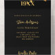 Un arrière - plan noir classique, décoré de faux confettis d'or. Personnalisez et ajoutez l'année de naissance, le nom, les détails de la fête, la date RSVP, l'adresse et le nom de retour.