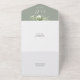 Faire-part de mariage vert tout-en-un avec verdure fleurie et typographie élégante. L'invitation comprend une carte RSVP perforée avec votre code QR du site Web mariage et des détails. Conçu par Thisisnotme©