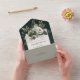 Ce faire-part de mariage enchanteur All in One saisit magnifiquement l'essence de la nature avec son étonnant design floral dans les tons verts sur un arrière - plan vert foncé serein. Cette suite d'invitation est le choix idéal pour les couples à la recherche d'une touche élégante et romantique à leur journée spéciale. Les invitations de mariage tout-en-un sont à la fois belles et pratiques en combinant le faire-part de mariage avec une carte postale RSVP perforée facile à enlever. Ils sont aussi rapides et faciles à préparer pour l'envoi. Adressez-vous simplement à l'invitation, pliez le rabat arrière et scellez avec les autocollants clairs inclus. Une fois que vos invités reçoivent l'invitation préadressée, ils arrachent simplement la carte perforée RSVP et la déposez dans le courrier.