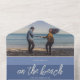Un modèle d'invitation de mariage de plage qui présente une aquarelle peinte abstrait arrière - plan des vagues de l'océan bleu profond et la calligraphie moderne pour le titre : "sur la plage". Classique et élégant, simple et moderne, il est un choix agréable pour un mariage d'été, un mariage d'escalier ou un mariage de plage. Tout cela en un modèle faire-part de mariage inclut la carte RSVP et une photo de la future mariée et mariée.