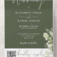 Invitation Tout En Un Olive Green Floral Monogramme QR Code Mariage