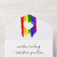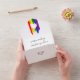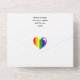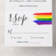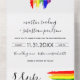 Charmant tout en un seul lgbt faire-part de mariage avec le drapeau de la fierté arc-en-ciel dessiné avec des touches désordonnées et orné d'un coeur blanc contre un arrière - plan blanc.