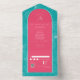 Invitation Tout En Un Palm Tree Beach Bleu rose Mariage QR Code