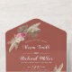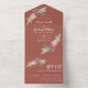 Pampas d'herbe séchée, palmiers feuilles et roses All in One faire-part de mariage en terre cuite. Il présente un bouquet de pampas séché, de palmiers feuille et rose aux coins et votre texte sur terre cuite brun. Les noms sont en typographie de script et la carte RSVP peut être détachée.