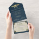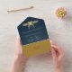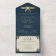 Invitation Tout En Un Papillon Art Déco Monogramme Mariage bleu or