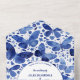 Peinture à papillon couleur bleu et blanc indigo. Une magnifique coordination tout en une seule invitation que vous pouvez modifier pour convenir à votre célébration. La partie inférieure peut être arrachée à R.S.V.P. par la poste.