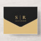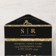 Bande de parties scintillant en noir et or en un seul faire-part de mariage. Personnalisez les initiales du monogramme et les détails du mariage. Aussi parfait pour un renouvellement de voeu.