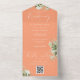 Invitation Tout En Un Peach Greenery Floral QR Code Monogramme Mariage